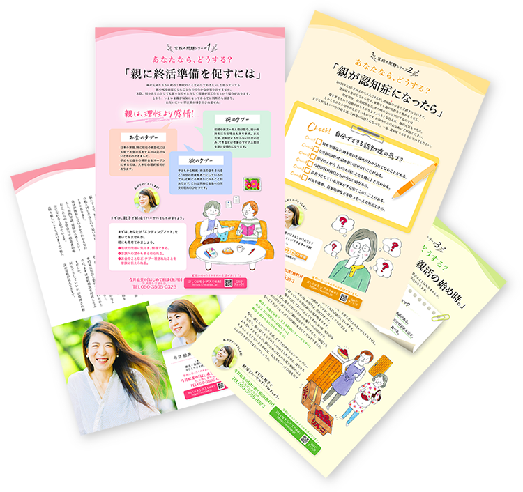 誰に相談したらいいのかいいかわからない」という方の財産や身の回りの整理、葬儀やお墓のことなどじっくりヒアリングをして、本音をお聴きします。表面に表れている問題だけでなく総合的な視点で根本的な問題点を見つけ、ご家族との調和も考えながらあなたの「心の相続」をワンストップで実現します。